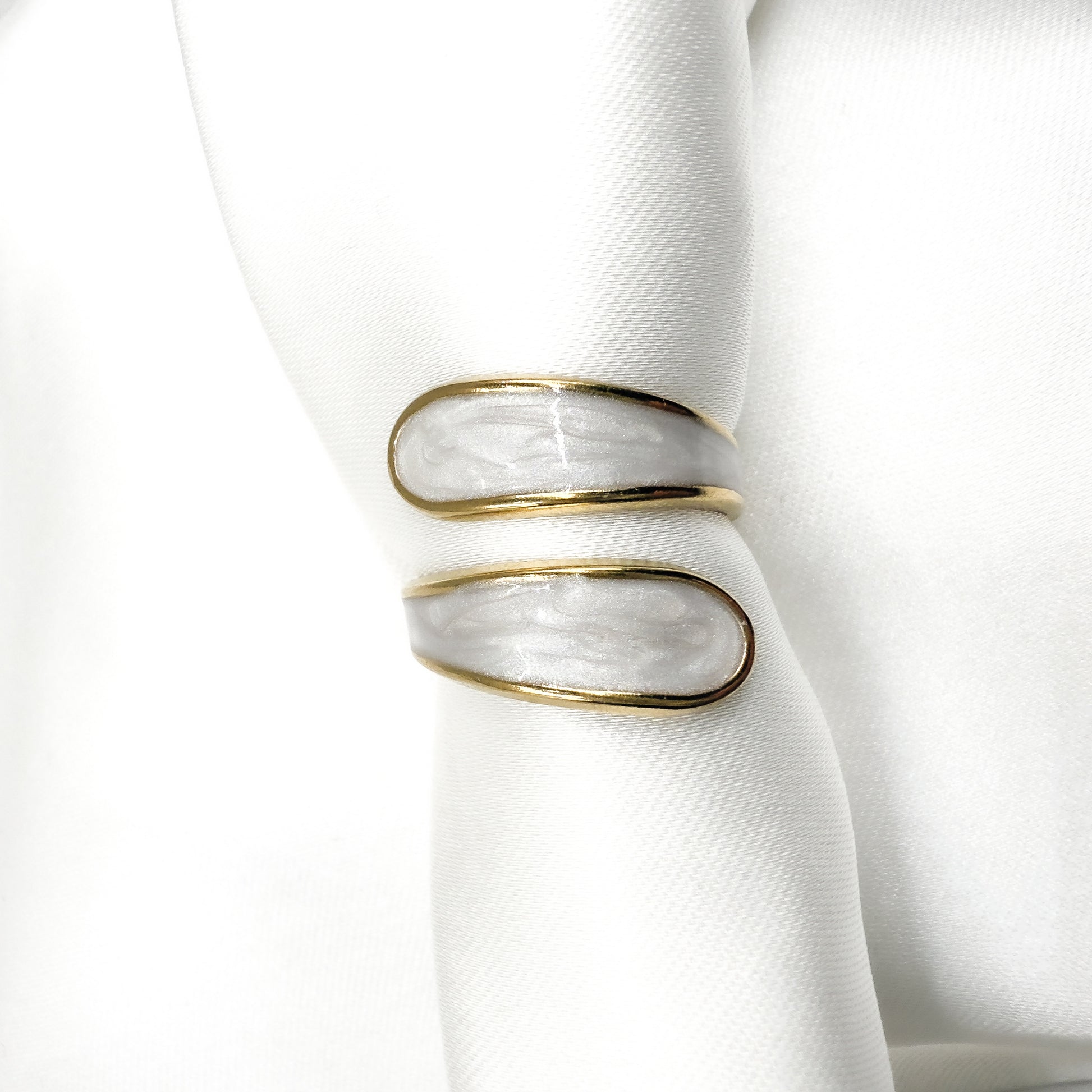 Este anillo esmaltado en blanco Perlado, elaborado en acero inoxidable con un baño de oro de 18k, combina elegancia y durabilidad. Su diseño refinado aporta un toque sofisticado, mientras que el esmalte blanco resalta la pureza del oro, asegurando una pieza versátil para cualquier ocasión.