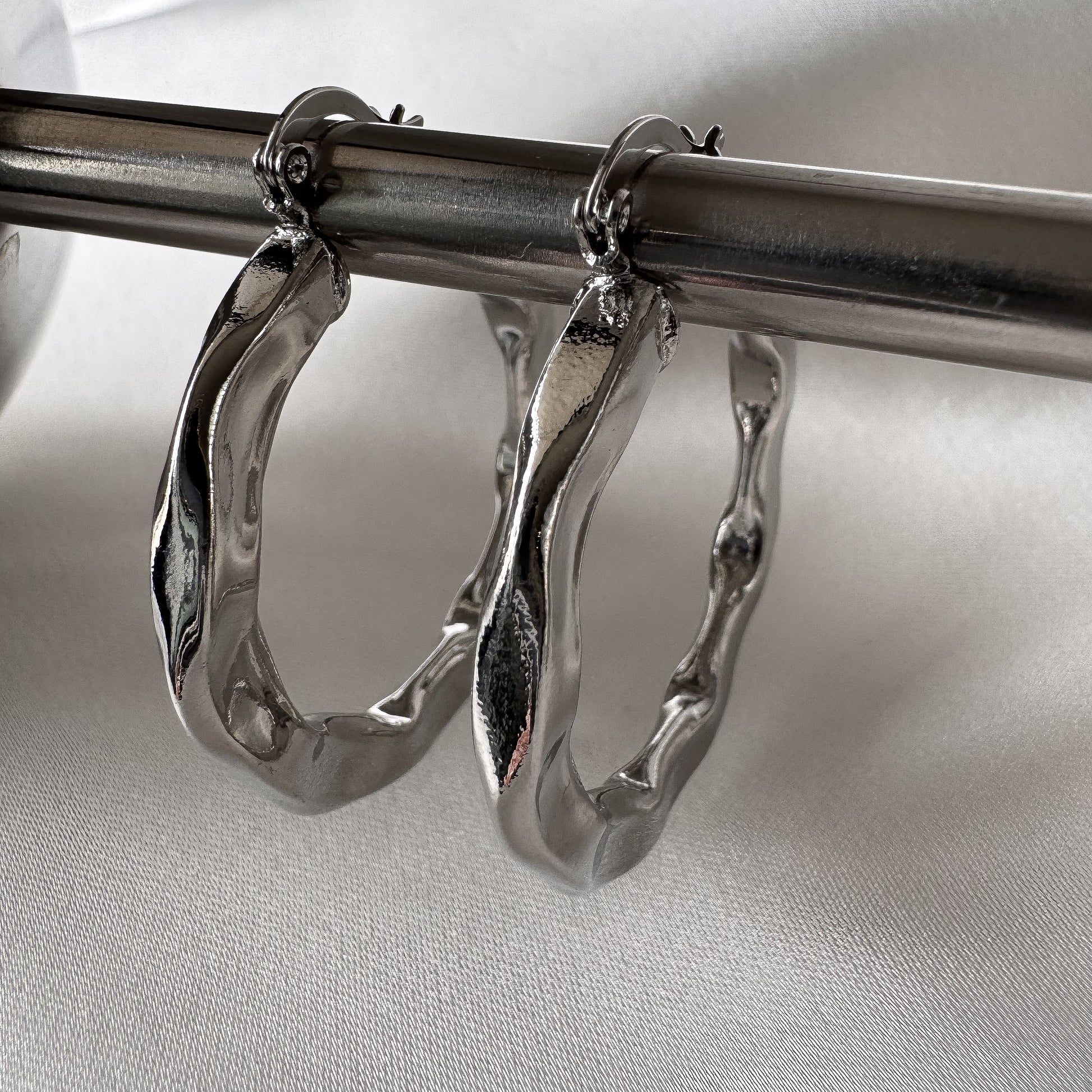Los Aros Baiser, fabricados en acero inoxidable con baño de plata, combinan durabilidad y estilo. Su diseño innovador aporta un toque de sofisticación y elegancia, ideal para complementar cualquier look con un acabado moderno y refinado. Perfectos para quienes buscan calidad y distinción en accesorios.