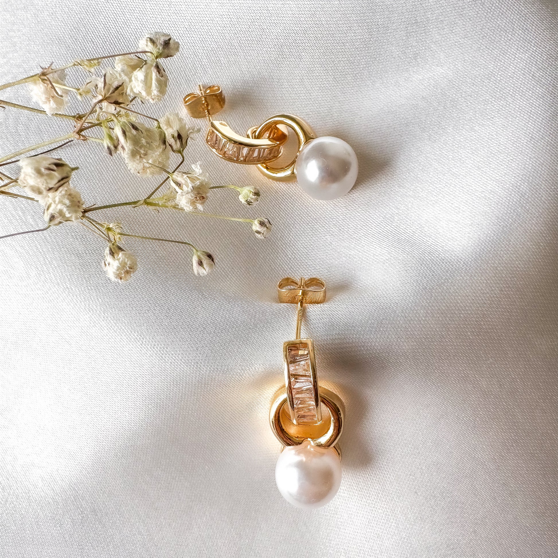 Estos aros Nuit combinan elegancia y sofisticación con una perla colgante que aporta un toque clásico y delicado. Fabricados en acero inoxidable con baño de oro 18k, ofrecen durabilidad y resistencia al desgaste. Los brillos en la parte superior realzan su diseño, haciendo de estos aros una pieza ideal para ocasiones especiales o para elevar cualquier look con un estilo refinado.