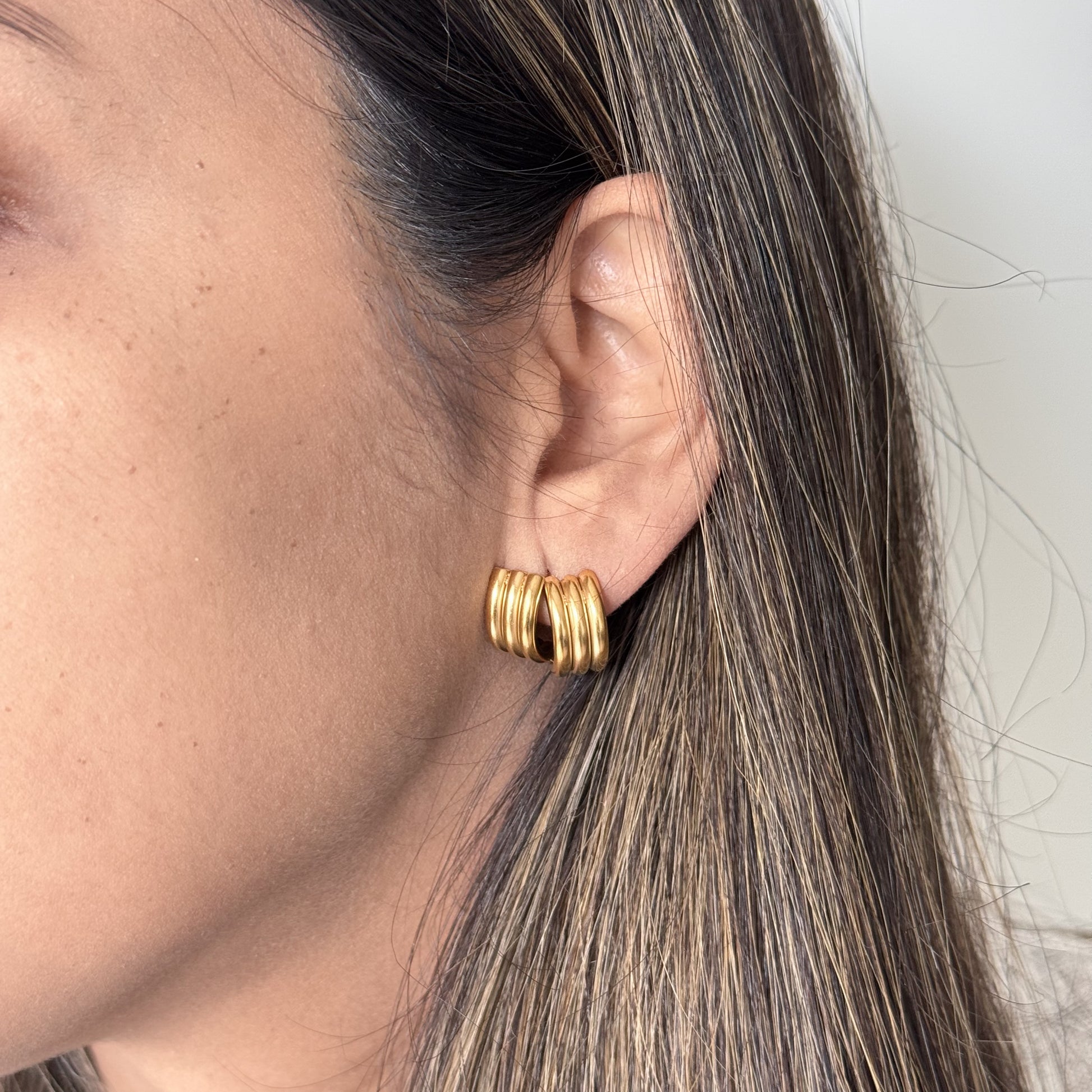 Estos aros Grace combinan la calidez del acero inoxidable con un delicado enchapado en oro 18k, resaltando líneas sutiles que se unen con elegancia. Su diseño refinado aporta un toque sofisticado y atemporal, ideal para quienes buscan una joya que destaque por su calidad y estilo discreto.