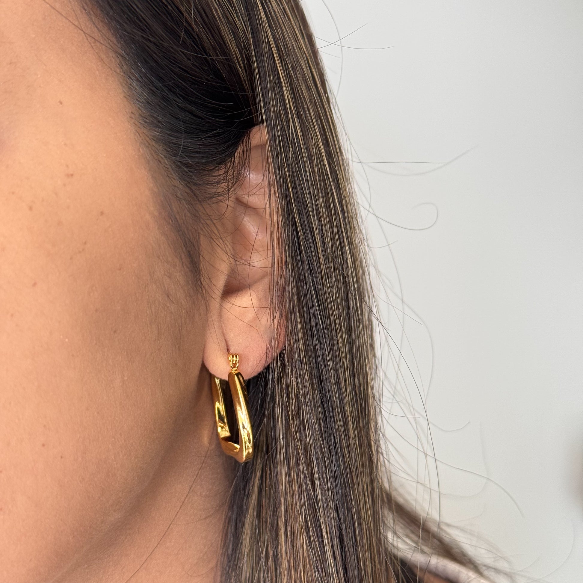 Estos elegantes aros Oris presentan un delicado diseño con un leve entorchado en enchape de oro 18k, realzado por el acero inoxidable como base que garantiza durabilidad y un acabado sofisticado. Perfectos para quienes buscan una joya con estilo atemporal y calidad superior.