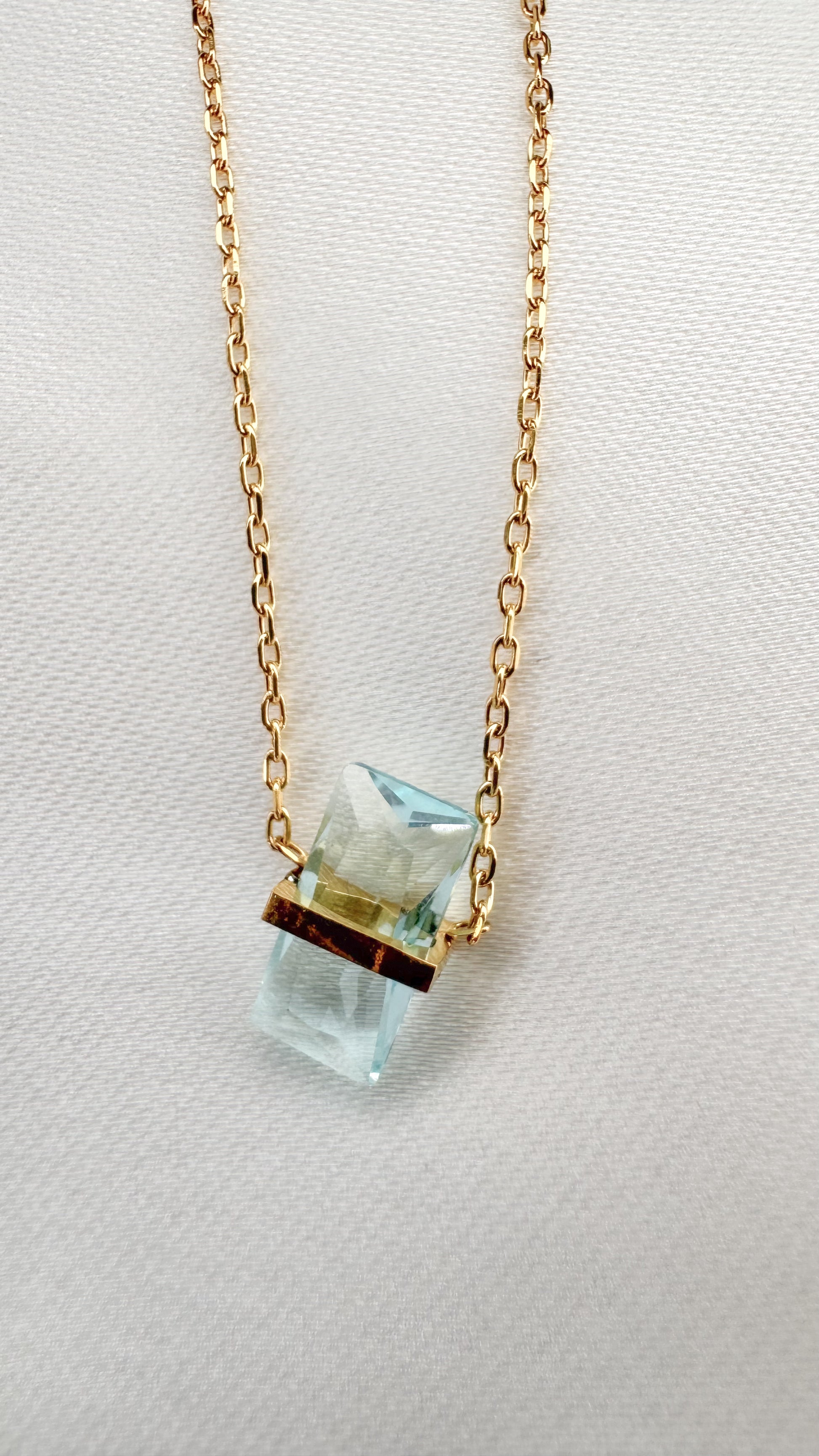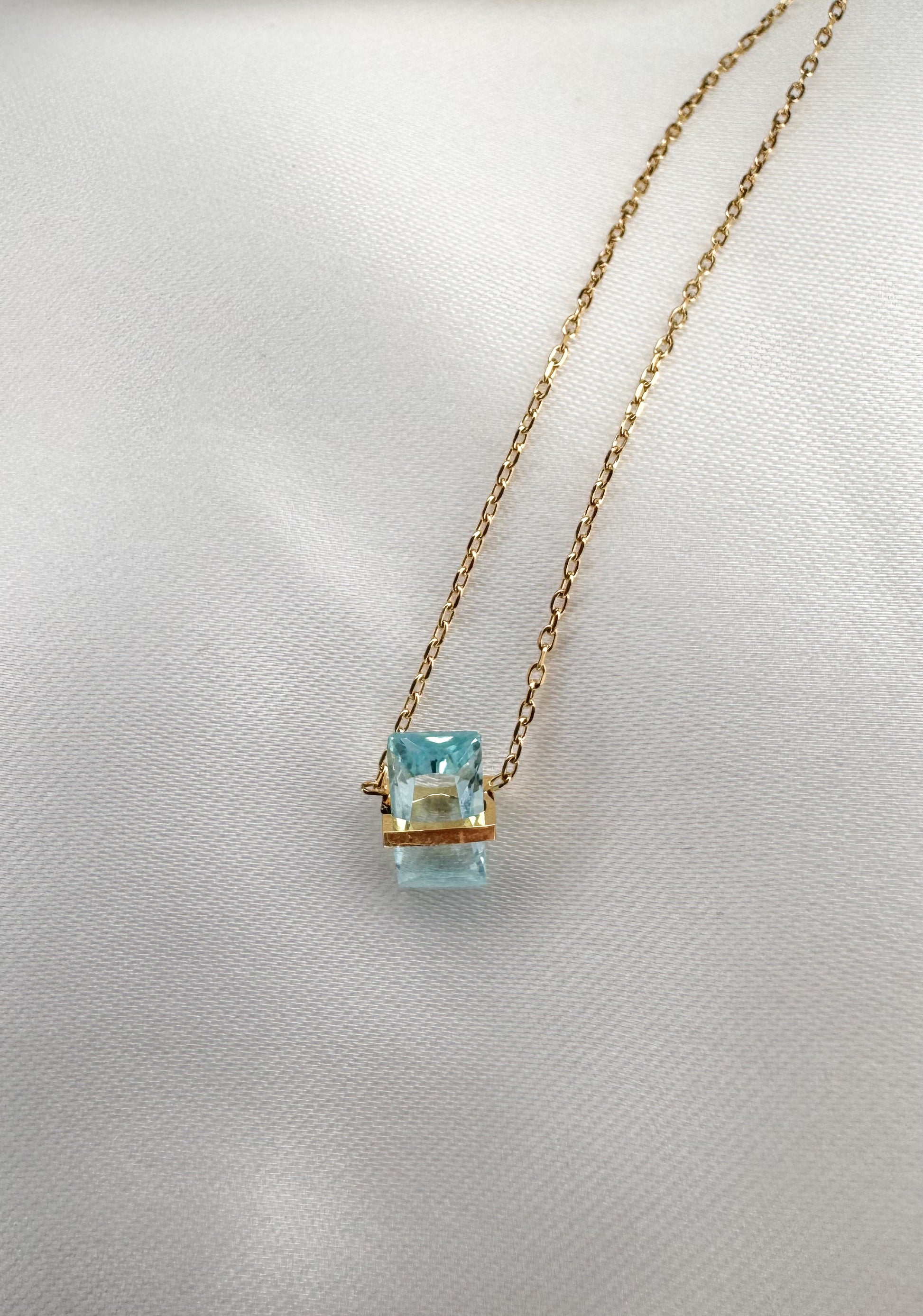 Este collar elegante y sutil está diseñado con un hermoso brillante azul colgante y un recubrimiento PVD a prueba de agua para un look único y de alta calidad, enchapado en oro 18k a base de acero inoxidable inoxidable 304. La piedra colgante en su diseño lo hace aún más hermoso.